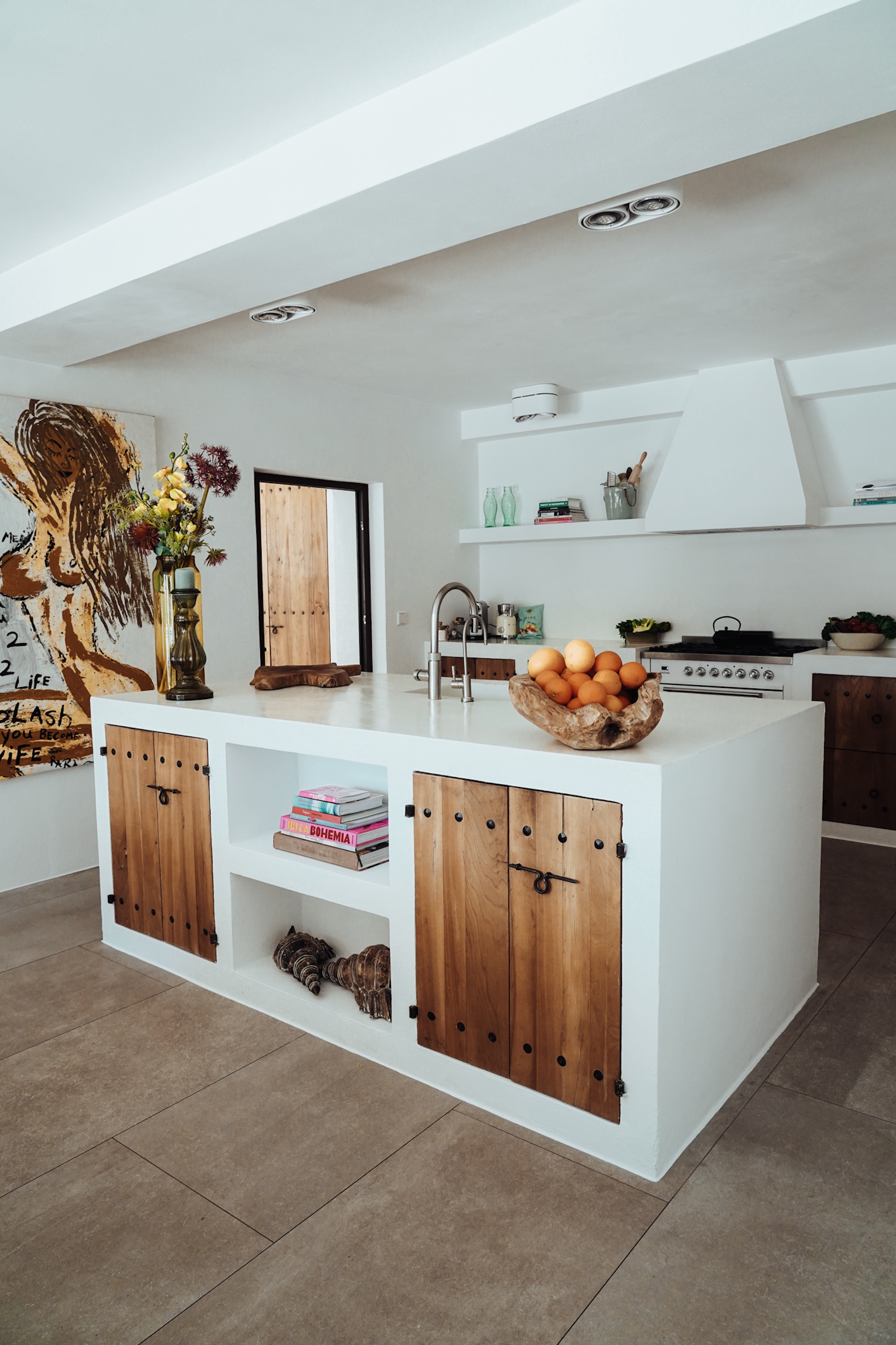 The interior of this villa can best be described as a tasteful mix of Ibicenco and Balinese influences. As a guest, you really have everything here! In the living room you will find a wonderful lounge sofa and a 62-inch television, including a satellite receiver and DVD player. The professional dolby surround system completes the cinema feeling - all you need for a wonderful evening at home. Light the fireplace, pour a glass of wine, turn on a movie and just relax!