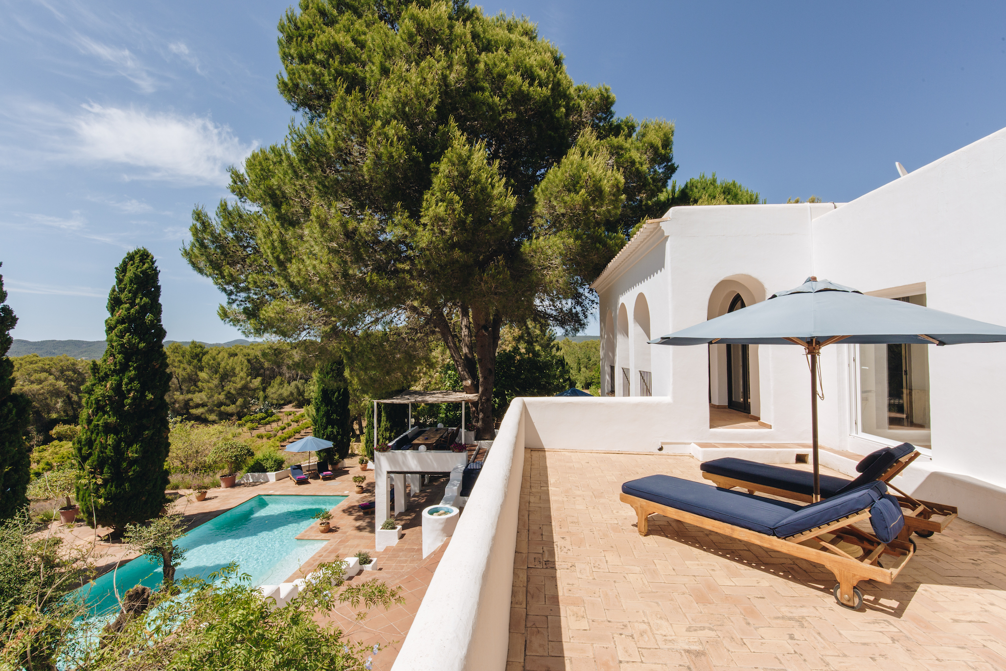 Adding to the peace and tranquility, there are a choice of terraces with luxuriously comfortable outdoor furniture, a BBQ and a large outdoor dining area.